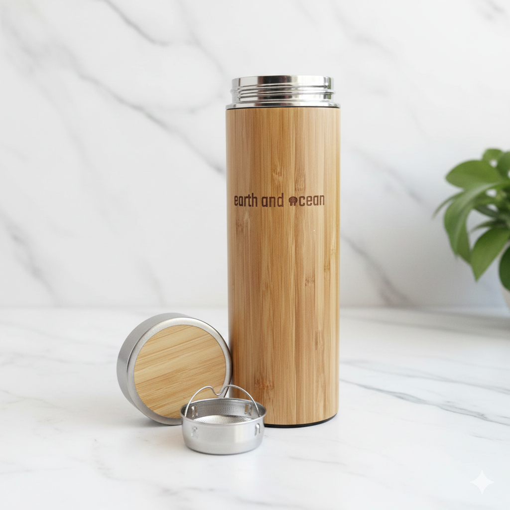 Ποτήρι/Θερμός για τσάι-καφέ 400ml από μπαμπού/ανοξείδωτο ατσάλι