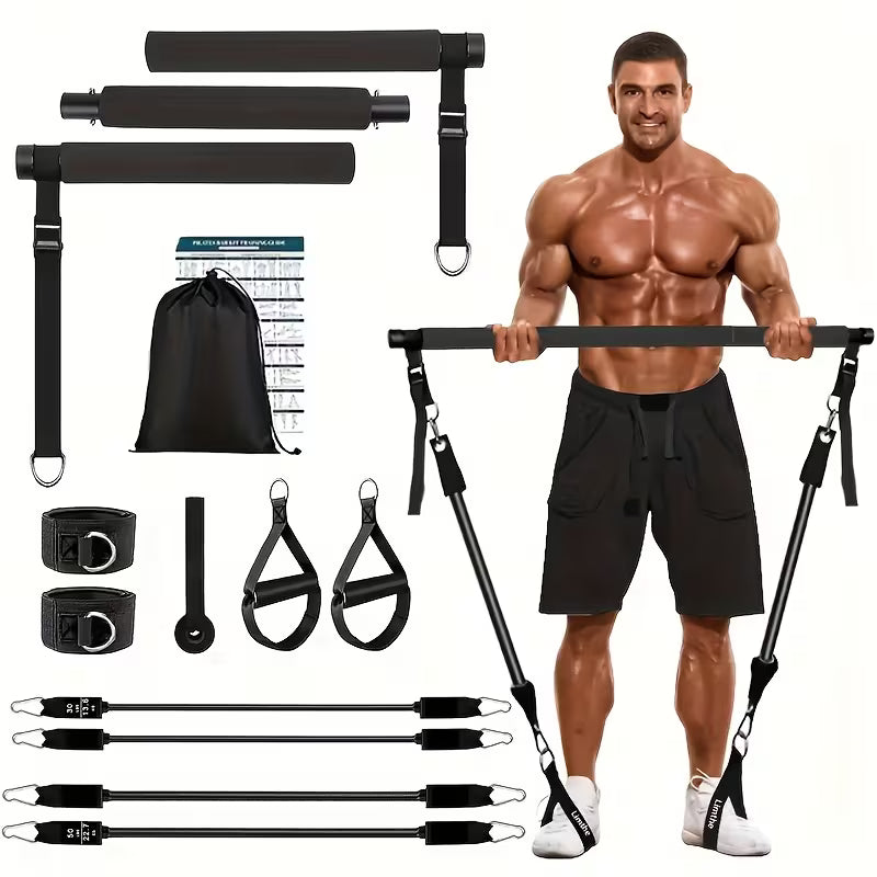 Perfect for Pilates, strength training, toning, and flexibility exercises, this kit helps you build muscle, improve posture, and increase core stability. The adjustable bar allows you to customize the length and resistance level, making it suitable for beginners and advanced users alike.