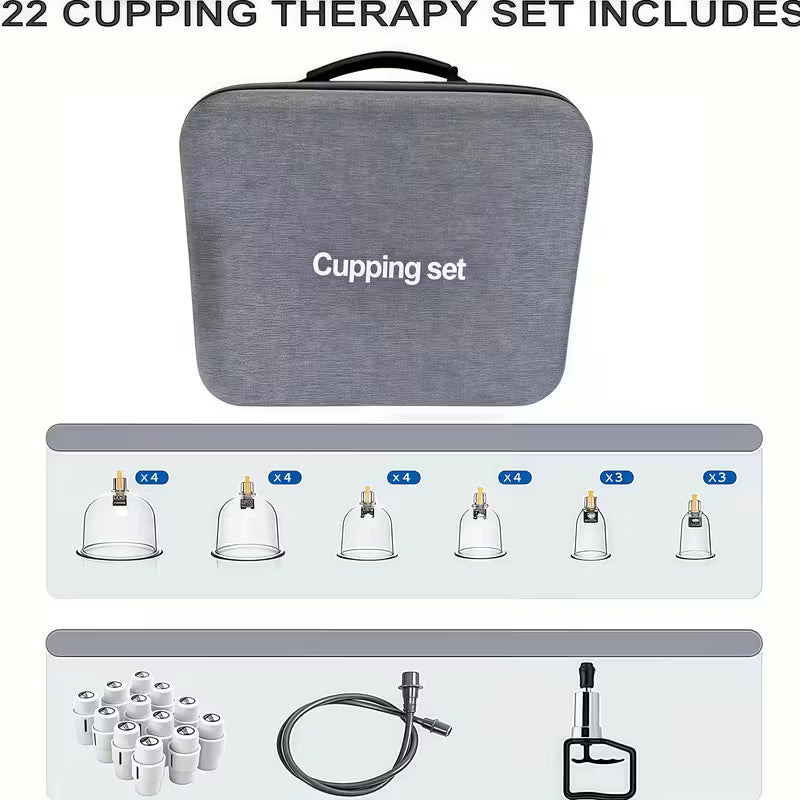 Elevate your home-wellness routine with our all-in-one Cupping & Relaxation Kit – a thoughtfully designed set featuring multiple cup sizes, a manual suction pump, brush & instruction manual, perfect for massage, recovery and self-care.