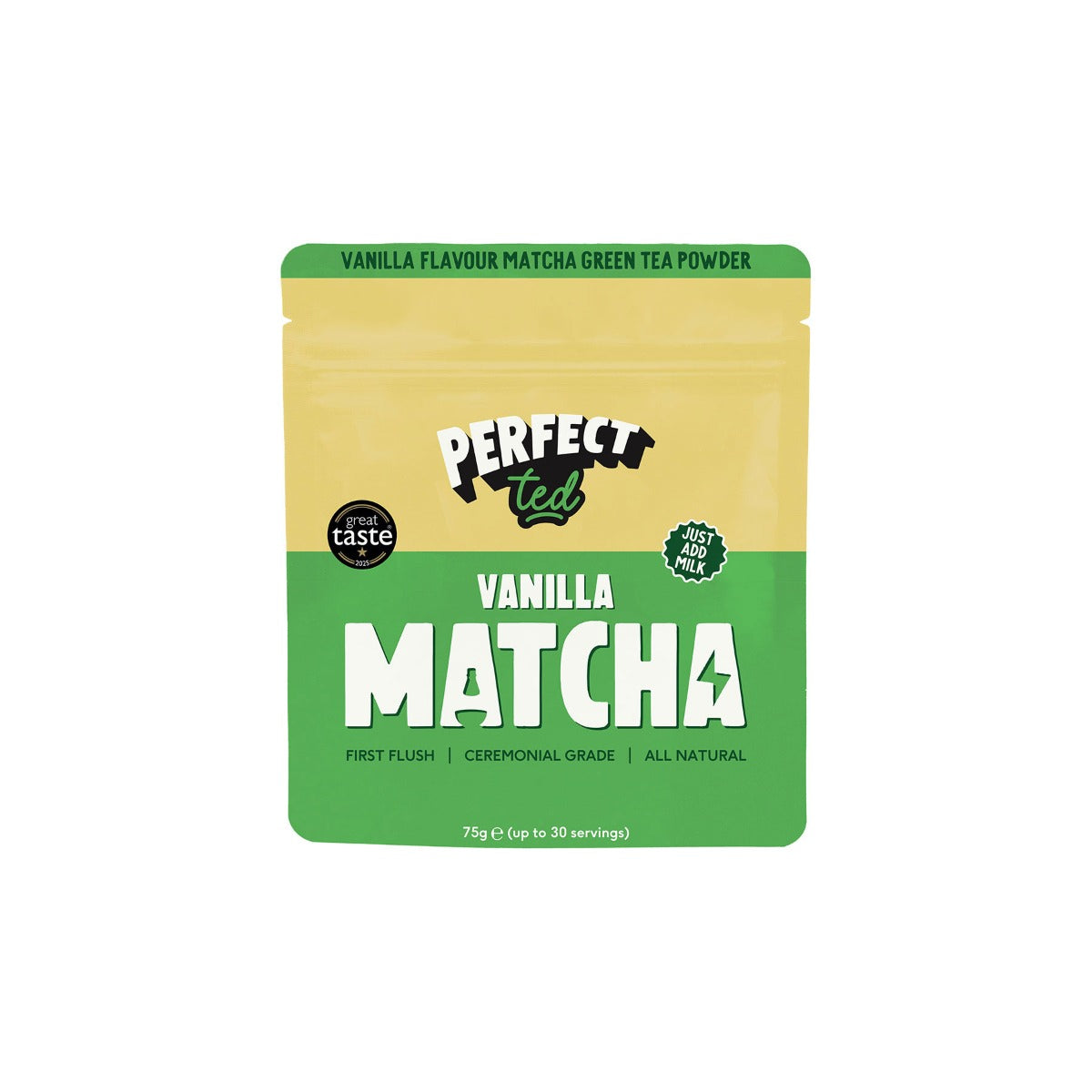 Awaken your senses with PerfectTed Ceremonial Grade Vanilla Matcha Powder in 75‑gram pouch. Crafted from shade‑grown young green tea leaves in Uji Japan, blended with natural vanilla flavour. Sweetened lightly for a smooth taste that balances umami green tea and creamy vanilla. Designed for matcha lovers who want quality and pleasure in every scoop.